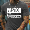 Men's Funny Pastor Warning Graphic T-Shirt - Anything You Say Used in Sermon Short Sleeve Tee |