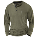 Men's Graphic Cross Jesus Henley Shirt Waffle T Shirt Long Sleeve 3D Print Designer Simple Casual Sports Outdoor Holiday Festival Spring & Fall Black White Brown Green Henley Henley T-Shirt
