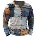 Men's Graphic Patchwork Denim Henley Shirt Long Sleeve 3D Print Daily Retro Vintage Casual Casual Holiday Going out Spring & Fall Blue Royal Blue Sky Blue Dark Blue Henley Henley T-Shirt