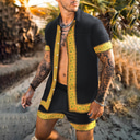 Men's Floral 2pcs Shirts Sets Summer Hawaiian Shirt Short Sleeve Short Pants Turndown Fashion Hawaiian Casual Outdoor Vacation Beach 3D Print Button-Down Summer Spring Gold + Black Black Yellow