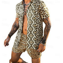 Men's Leopard Zebra 2pcs Shirts Sets Summer Hawaiian Shirt Short Sleeve Short Pants Turndown Fashion Hawaiian Casual Outdoor Vacation Beach 3D Print Button-Down Summer Spring Black Yellow Pink