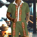 Men's Geometry Ethnic 2pcs Shirts Sets Summer Hawaiian Shirt Short Sleeve Short Pants Turndown Vacation Hawaiian Outdoor Holiday Pocket Buttons Print Summer All Seasons White Green |