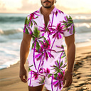 Men's Floral Geometric Pattern Ethnic 2pcs Shirts Sets Summer Hawaiian Shirt Short Sleeve Short Pants Turndown Vacation Hawaiian Outdoor Hawaiian Holiday Pocket Buttons Print Summer All Seasons |