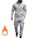Men's Tracksuit Sweatsuit Quarter Zip Sweatshirt Apricot Black White Wine Red Half Zip Plain 2 Piece Sports & Outdoor Daily Holiday Polyester Streetwear Basic Casual Fall & Winter Clothing Apparel |