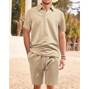 Men's Jacquard Tracksuit Polo Shirt & Shorts Set Outfit Set Lapel Outdoor Daily Sports Pocket Drawstring 2 Piece Plain Black White Navy Blue Polyester Activewear Classic Casual Summer |