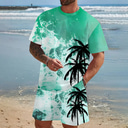 Men's Nautical Coconut Palm 2pcs Tees sets Summer Tops Short Sleeve Short Pants Crew Neck Sport Designer Casual Outdoor Vacation Daily Printed Summer Robin's Egg Blue Green |