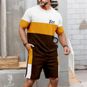 Men's Horizontal Stripes 2pcs Tees sets Summer Tops Short Sleeve Short Pants Crew Neck Sport Casual Outdoor Vacation Sport 3D Print Summer Pink Brown Green |