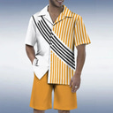 Men's 2pcs Shirts Sets Shirt Set Short Sleeve Short Pants Cuban Collar Vacation Casual Daily Party Casual Daily 3D Print Summer Yellow Red |