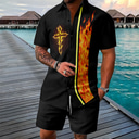 Easter Men's Cross 2pcs Shirts Sets Shirt Set Short Sleeve Short Pants Turndown Vintage Casual Daily Festival Outfit 3D Print Summer Robin's Egg Blue White Orange |