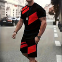 Men's Geometric 2pcs Tees sets Summer Tops Short Sleeve Short Pants Crew Neck Athleisure Sport Casual Daily 3D Print Summer Robin's Egg Blue Grey Green |