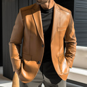 Men's Faux Leather Jacket Blazer Outdoor Vacation Daily Wear Fashion Streetwear Fall Winter Polyester Faux Leather Plain Pocket Buttons Windproof Warm Single Breasted Blazer Black Red Brown