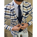 Men's Blazer Formal Evening Wedding Party Birthday Party Fashion Casual Spring & Fall Polyester Plaid / Check Geometry Pocket Casual / Daily Single Breasted Blazer White