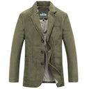 Men's Jacket Blazer Sport Coat Work Business Warm Wearable Formal Style Spring Fall Solid Color Artistic / Retro Regular Brown black khaki Army Green Jacket