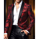 Men's Blazer Business Cocktail Party Wedding Party Fashion Casual Spring Fall Polyester Graphic Tee Buttons Comfortable Single Breasted Blazer Red |