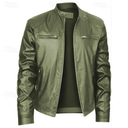 Men's Faux Leather Jacket Biker Jacket Motorcycle Jacket Vacation Daily Windproof Warm Zipper Fall Winter Plain Fashion Classic Stand Collar Regular Black Red Royal Blue Blue Dark Green Jacket |