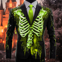 Men's Skeleton Blazer Jacket Casual Dark Festival 3D Print Spring Fall Winter Notch Long Sleeve Red Orange Green |
