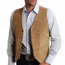 Men's Vest Gilet Suede Vest Vacation Daily Date Fashion Casual Spring & Fall Pocket Buttons Elastane Polyester Comfortable Plain Single Breasted One-button V Neck Regular Fit Black Champagne |