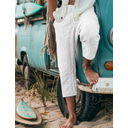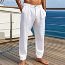 Men's Linen Pants Trousers Summer Pants Drawstring Elastic Waist Plain Comfort Soft Full Length Party Daily Beach Fashion Simple Black White Micro-elastic