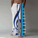 Men's Piano Musical Notes Trousers Baggy Pants Casual Pants Mid Waist Vintage Retro Vacation Holiday Elastic Drawstring Waist Linen-Like Pants with Pockets Summer Spring 3D Print Black Blue