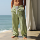 Men's Linen Pants Trousers Summer Pants Beach Pants Drawstring Pocket Elastic Waist Plain Comfort Breathable Vacation Daily Holiday Hawaiian Boho Black White |