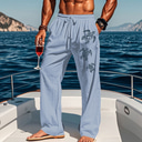 Men's Cotton Linen Pants Drawstring Elastic Waist Wide Leg Baggy Pants Turtle Sea Creatures Comfort Full Length Outdoor Streetwear Vacation Hawaiian Trousers White Blue Micro-elastic |