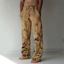 Men's Trousers Summer Pants Beach Pants Elastic Drawstring Design Front Pocket Straight Leg Graphic Prints Flower / Floral Comfort Soft Casual Daily For Vacation Linen Like Fabric Fashion Designer