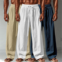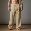 Men's Linen Pants Trousers Summer Pants Beach Pants Drawstring Elastic Waist Straight Leg Plain Comfort Breathable Full Length Casual Daily Holiday Vacation Fashion Black White |