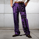 Men's Floral Ethnic Dress Pants Mid Waist Business Casual Formal Wedding Dailywear Zipper Pocket Straight Leg Trousers Summer Spring Fall 3D Print Yellow Blue Purple |