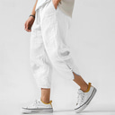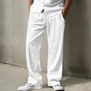 Men's Linen Pants Trousers Summer Pants Beach Pants Drawstring Elastic Waist Straight Leg Plain Comfort Breathable Full Length Casual Daily Holiday Vacation Fashion Black White |