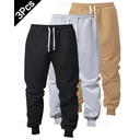 Multi Packs 3pcs Men's Black+Gray+Khaki Sweatpants Trousers Drawstring Elastic Waist Plain Vacation Daily Wear Polyester Spring |