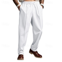 Men's Linen Pants Trousers Summer Pants Drawstring Elastic Waist Plain Comfort Breathable Full Length Casual Daily Holiday Fashion Classic Style White Blue |