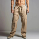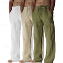 Men's Linen Pants Trousers Summer Pants Beach Pants Pocket Drawstring Elastic Waist Plain Comfort Breathable Vacation Daily Holiday Hawaiian Boho Light Khaki Black Micro-elastic |