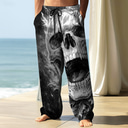 Men's Cool Skulls Rose Pants Trousers Mid Waist Drawstring Elastic Waist Hawaiian Horror Party Evening Wear Holiday Straight Leg Trousers Summer Spring Fall 3D Print Red Blue Purple |