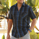 Men's Plaid Shirt Plaid Shirt Button Up Shirt Short Sleeve Shirt Turndown Outdoor Casual Dark Blue Plus Size Clothing Apparel Modern Style Retro Vintage