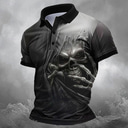 Day of the Dead Men's Skull Polo Shirts Golf Shirt Short Sleeve Polo Shirts Collared Shirts Horror Streetwear Festival Wear Party Outfits 3D Print Buttons Summer Spring Black |