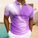 Men's Geometric Golf Shirt Short Sleeve Polo Shirts Collared Shirts Business Casual Vacation Wear Formal Wear Festival Wear Buttons 3D Print Summer Purple Khaki Gray |