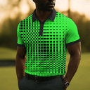 Men's Plaid Zip Polo Shirts Golf Shirt Short Sleeve Polo Shirts Collared Shirts Casual Vacation Wear Formal Wear Festival Wear 3D Print Quarter Zip Polo Spring & Summer Black Purple Brown |