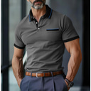 Men's Polo Shirt Button Up Polos Casual Sports Lapel Short Sleeve Fashion Basic Color Block Patchwork Pocket Summer Regular Fit Navy White Wine Blue Gray Polo Shirt |