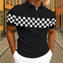 Men's Geometic Checkerboard Polo Short Sleeve Polo Shirts Collared Shirts Casual Athleisure 3D Print Buttons Summer White Navy Blue Sky Blue |