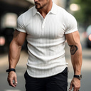 Men's Knit Polo Sweater Textured Casual Holiday Lapel Short Sleeve Fashion Basic Plain Sexy Summer Slim Fit Black White Khaki Knit Polo Sweater |