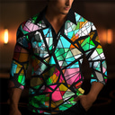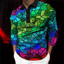 Men's Graphic Polo Shirts Golf Shirt Long Sleeve Polo Shirts Collared Shirts Casual Vacation Wear Rave Wear Party Outfits 3D Print Buttons Fall & Winter Purple Green |