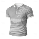 Men's Palm Tree Zip Polo Short Sleeve Stand Collar Vacation Leisure Athleisure Hawaiian Casual Daily Zipper 3D Print Summer Robin's Egg Blue Light Green Brown