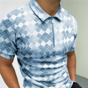 Men's Polo Shirt Quarter Zip Polo Casual Daily Turndown Quarter Zip Short Sleeve Sports Fashion Plaid Zipper Quarter Zip Spring & Summer Regular Fit Green Apricot Light Blue Polo Shirt |