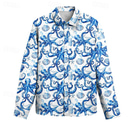 Men's Tropical Octopus Turtle Summer Hawaiian Shirt Aloha Shirt Printed Shirts Long Sleeve Shirt Turndown Hawaiian Resort Vacation Going out Beach Blue Dark Blue S M L |