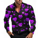 Valentine's Day Men's Heart LOVE Satin Shirt Button Up Shirt Long Sleeve Fashion Casual Party Gift Holiday Spring Fall Turndown 3D Print Black Pink Blue Purple Green |