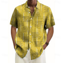 Men's Geometric Line Shirt Casual Shirt Button Up Shirt Short Sleeve Fashion Casual Vacation Holiday Streetwear Summer Turndown 3D Print Collared Shirts Front One Pocket Blue Yellow |