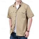Men's Shirt Summer Shirt Casual Shirt Button Up Shirt Cargo Shirt Deep Blue khaki Army Green Beige Gray Short Sleeve Plain Shirt Collar Vacation Hawaiian Pocket Clothing Apparel 100% Cotton Fashion |