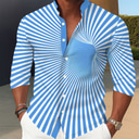 Men's Gradient Line Shirt Button Up Shirt Stand Collar Shirt Long Sleeve Casual Outdoor Vacation Daily Spring Fall Mandarin Collar Band Collar 3D Print Linen Like Shirt Blue Red Purple Gold Green |