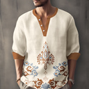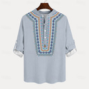 Men's Ethnic Shirt Button Up Shirt Henley Shirt Long Sleeve Vintage Casual Tribal Vacation Daily Beach Summer Winter Spring & Fall Stand Collar Button Up 3D Print Light Blue Beige