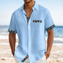 Men's Shirt Linen Shirt Summer Shirt Beach Wear Button Up Shirt Solid Color Vacation Curise Black Pink Green Light Blue Short Sleeve Collar Summer Spring & Summer Clothing Apparel Color Block